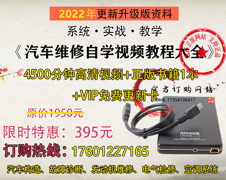 《汽车维修自学教程大全》全部是实战讲解!在智能手机/DVD机/电视机/电脑/平板电脑都可以播放,画面语音都很清晰。并且我们会不定时更新内容,一次购买后续免费更新,让你及时掌握新的汽车维修技巧。